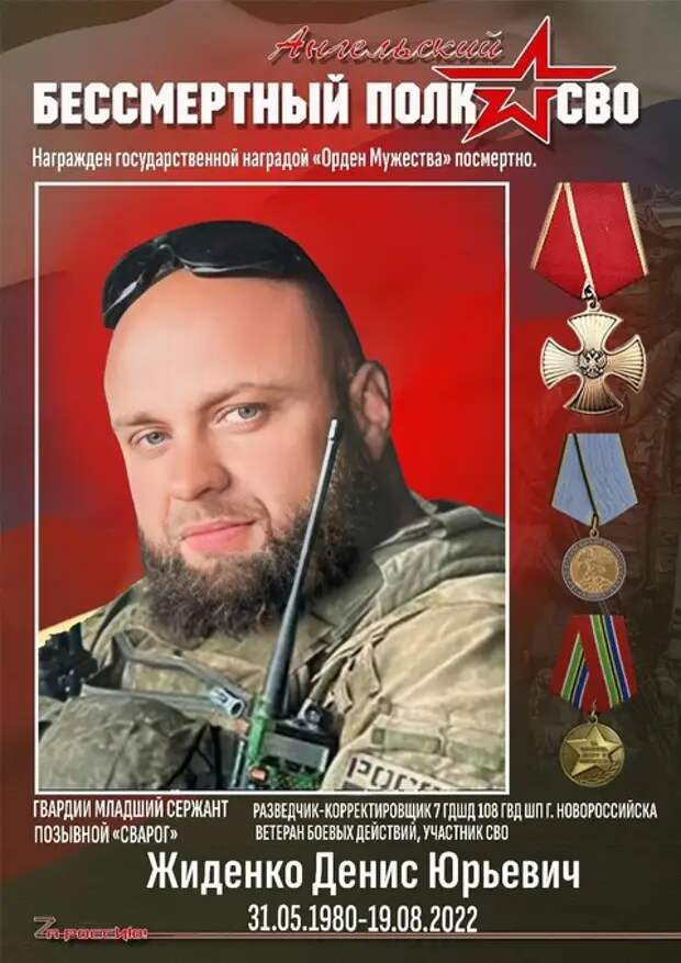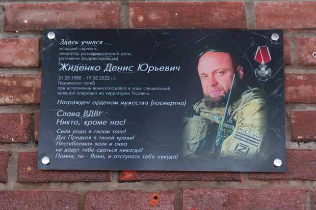 Денис Жиденко – участник специальной военной операции на Украине, геройски погиб в бою в Николаевской области 19 августа 2022 года, накрыв раненого товарища. За героизм и отвагу посмертно награжден Орденом Мужества.