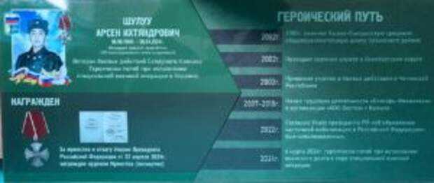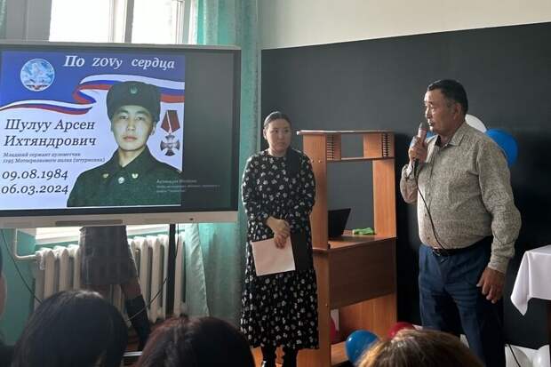В школе, где учился Арсен, открыли не только мемориальную доску, но и парту Героя в его честь, в честь выпускника, участника специальной военной операции, кавалера ордена Мужества Шулуу Арсена Ихтяндровича.