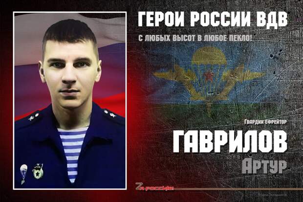 Ефрейтор Артур Гаврилов. Противник открыл огонь по позициям российских военнослужащих из автоматов и крупнокалиберных пулеметов. Подвергаясь обстрелу, Артур, ведя огонь из автомата, уничтожил трех националистов. По итогам боя группа националистов была полностью ликвидирована