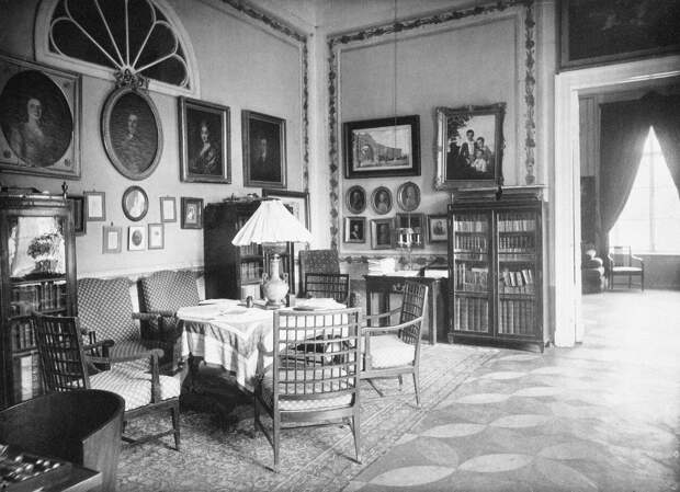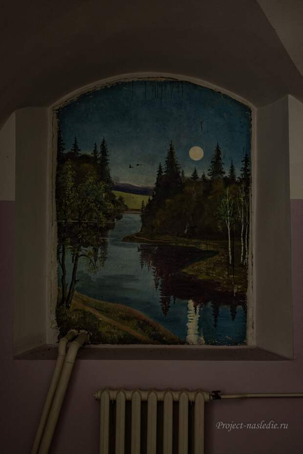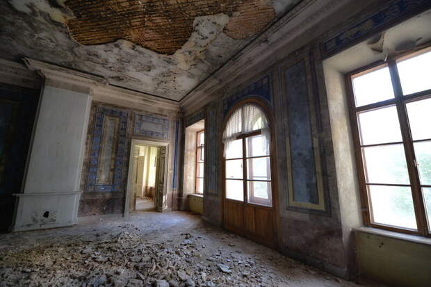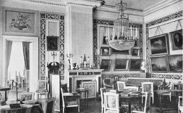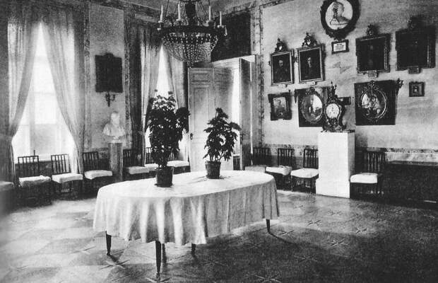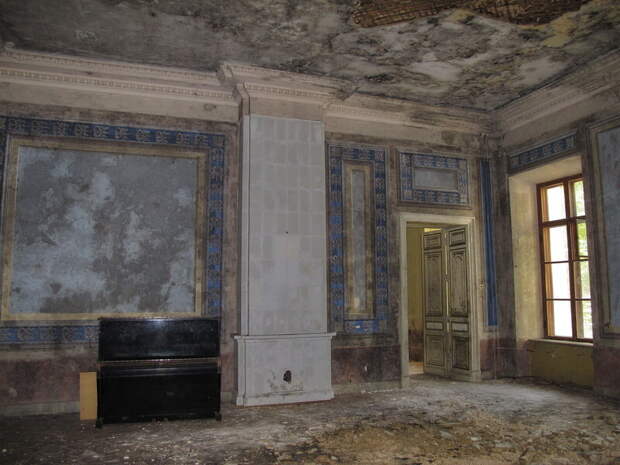 В советское время здесь располагались детская колония, дом отдыха и пансионат. Отдадим должное советским реставраторам, трудом которых в 1950-60-х годах была возобновлена первоначальная отделка почти всех комнат и залов первого этажа. Под позднейшими многократными слоями покраски найдены и восстановлены орнаментальная роспись стен и живописные панно над дверными проемами. Это Голубая гостиная. Наши дни.