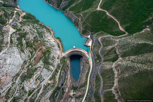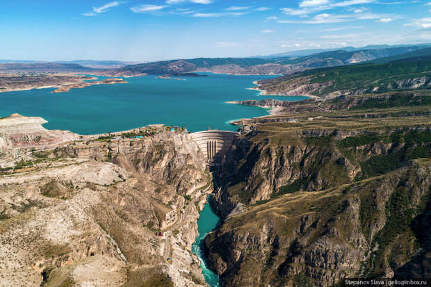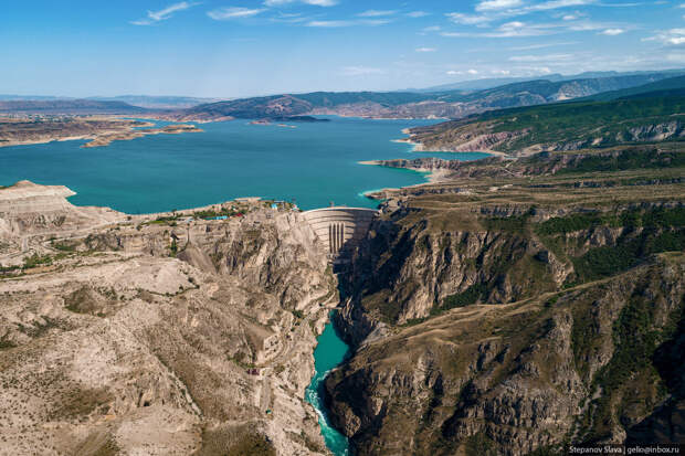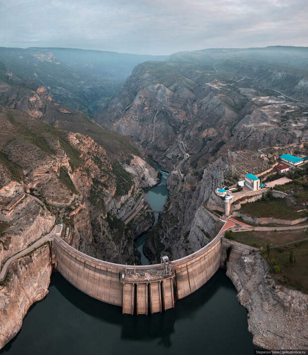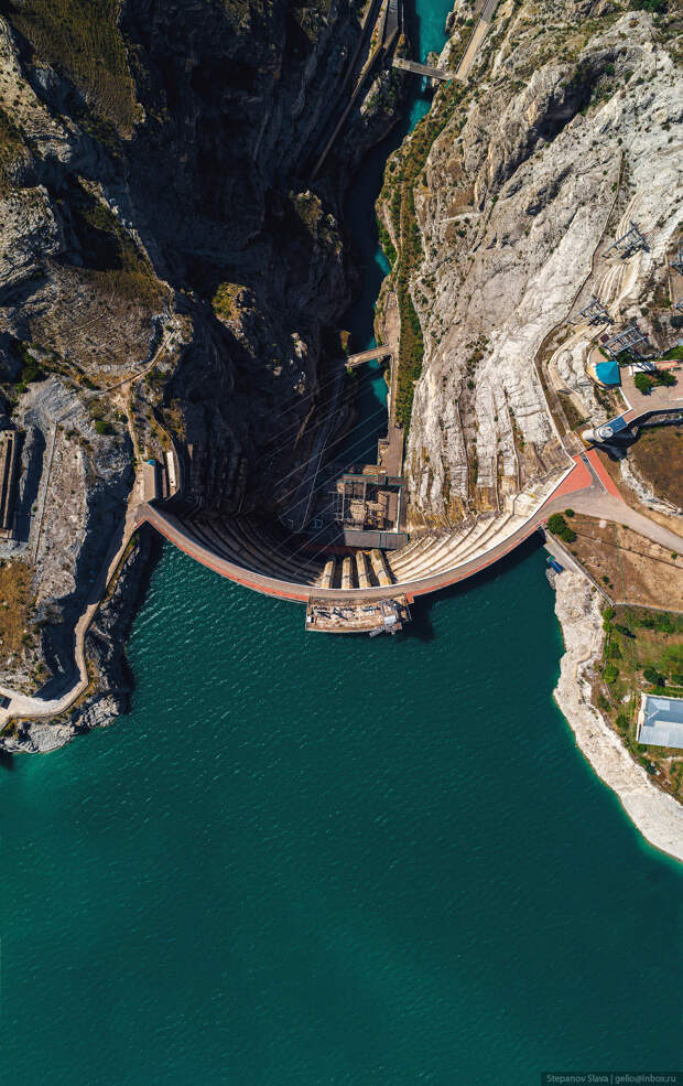 15. С другой стороны плотины начинается Сулакский каньон — самый глубокий в Европе. В некоторых местах глубина достигает 1920 м — это на 63 м больше, чем в Большом каньоне в США.