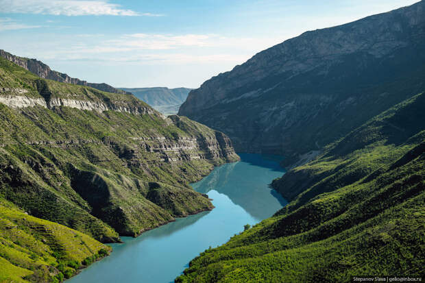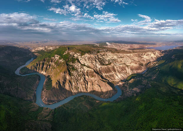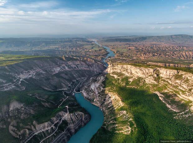 1. Каньон появился благодаря реке Сулак — самой полноводной в Дагестане. Длина реки почти 170 километров, она начинается в Главном Сулакском каньоне, проходит по всему ущелью длиной 53 км, затем по долине — и впадает в Каспийское море.