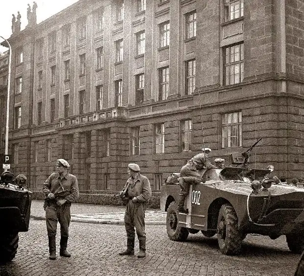 Советские десантники блокировали здание ЦК КПЧ в Праге.