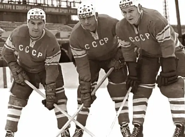 Тройка нападения сборной СССР Александров, Альметов, Локтев.