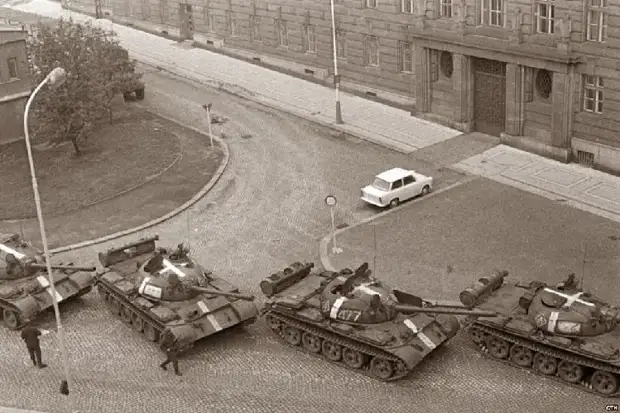 В три часа ночи с 20 на 21 советские солдаты перешли Дунай. В эту же ночь границу Чехословакии пересекли ещё несколько советских дивизий, а также войска Польши, ГДР, Венгрии и Болгарии. В считанные часы более 200 тысяч солдат и 5 тысяч танков дружественных государств заняли все крупные города Чехословакии. На танках были нарисованы белые полосы, так отличали своих.