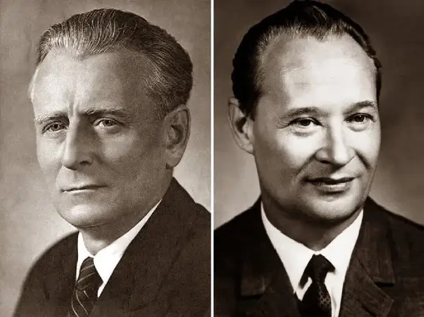 Слева: Антонин Йозеф Новотны – президент Чехословакии в 1957-1968 годах, первый секретарь ЦК КПЧ в 1953-1968 годах. Справа: Александр Дубчек – Первый секретарь ЦК КПЧ в январе 1968 - апреле 1969 - главный инициатор курса реформ, известных как Пражская весна.
