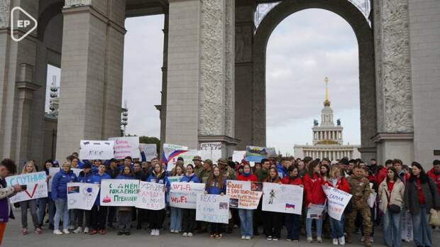 В Москве более 5 тысяч активистов вышли на ВДНХ с плакатами, на которых описали знаковые достижения России.