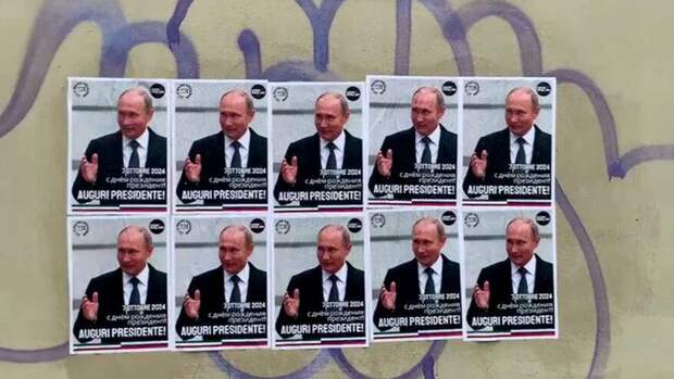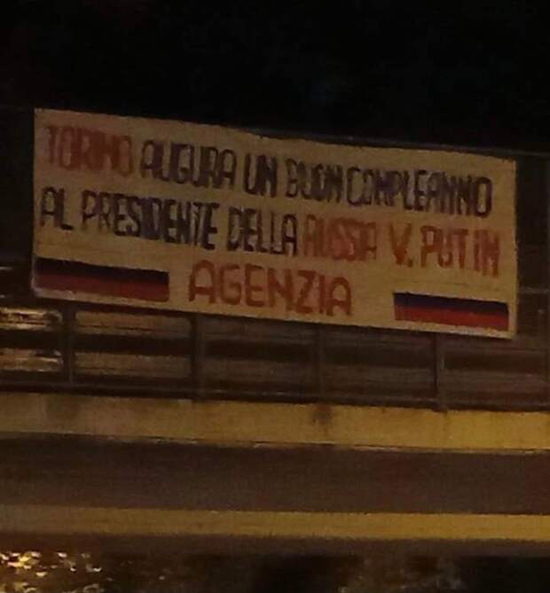 Кроме того, поздравления от активистов появились накануне и в итальянских Генуе и Турине. Они вывесили баннер и расклеили листовки.