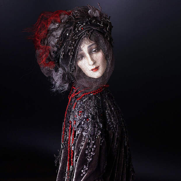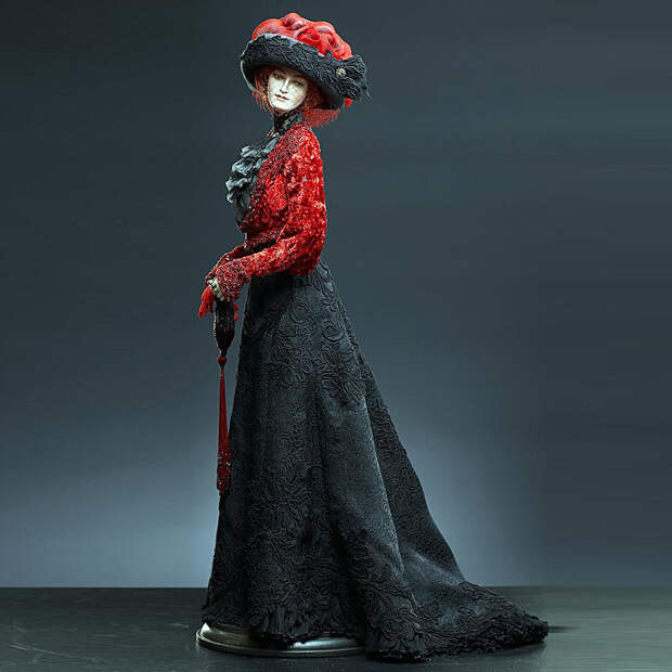 Вдохновение Александра черпает не где-нибудь, а в живописи, литературе и музейных архивах. Её куклы будто сбежали из романов Серебряного века или вынырнули с полотен в стиле ар-нуво — элегантные, таинственные и подозрительно реалистичные. Иногда даже кажется, что вот-вот моргнут.