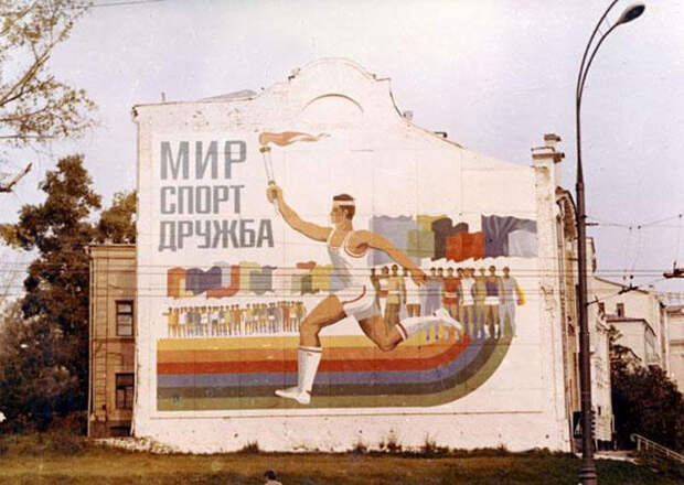 Наш дом тоже немножко поучаствовал в Олимпиаде, предоставив свой оголившийся после сноса соседей боковой фасад под картинку.