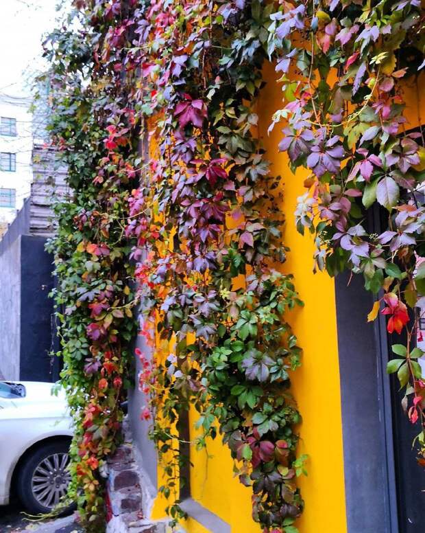 Современный внешний декор, включающий элементы из битой посуды и цветной плитки, появился благодаря ресторану испанской кухни, ранее работавшему в этом доме.