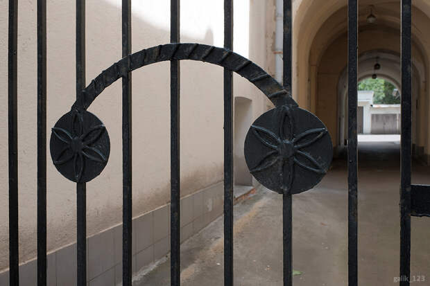 Для обеспечения проезда во двор была сооружена арка с южной стороны, над которой сохранились инициалы Филимонова.