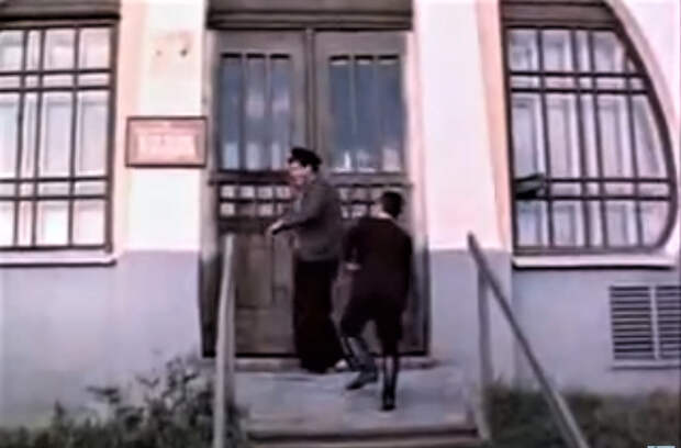 Ну а эта тугая дверь нам известна по эпизоду фильма "Место встречи изменить нельзя". Именно здесь Глеб Егорыч сунул в карман Кирпичу украденный им ранее в трамвае кошелёк. Похоже, что во время съёмок фильма в здании реально находилось отделение милиции. Обстановочку внутри только немножко "состарили".