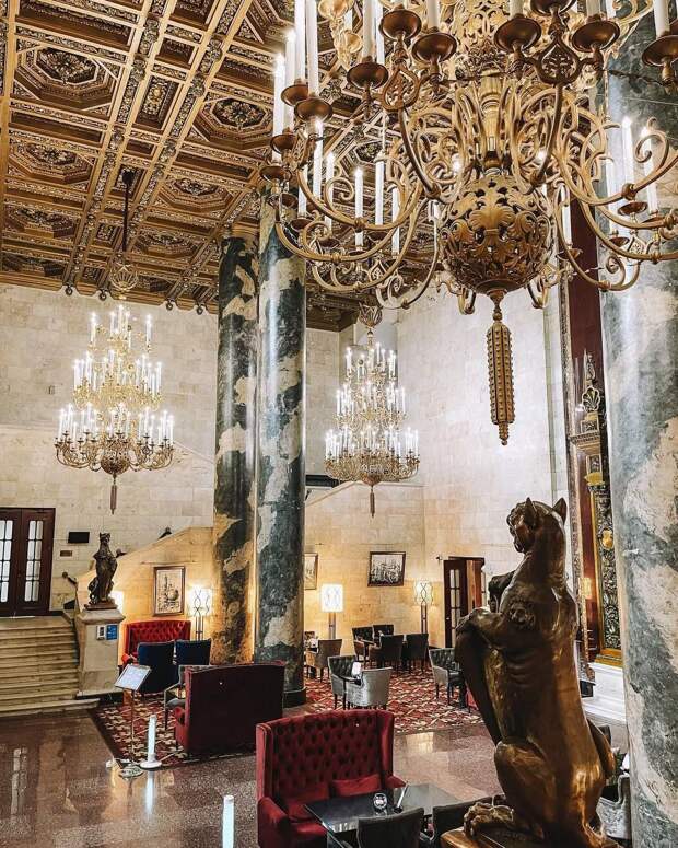 Изначально планировалось заселять в гостиницу иностранцев. Потому надо было, чтобы они потеряли дар речи от красоты, как только они попадали внутрь.