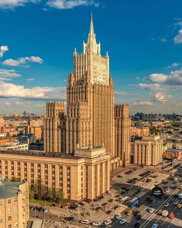 Здание МИД РоссииВ январе 1947 года Советом Министров СССР было принято постановление о строительстве в Москве многоэтажных зданий, одним из которых стала и высотка на Смоленской площади.