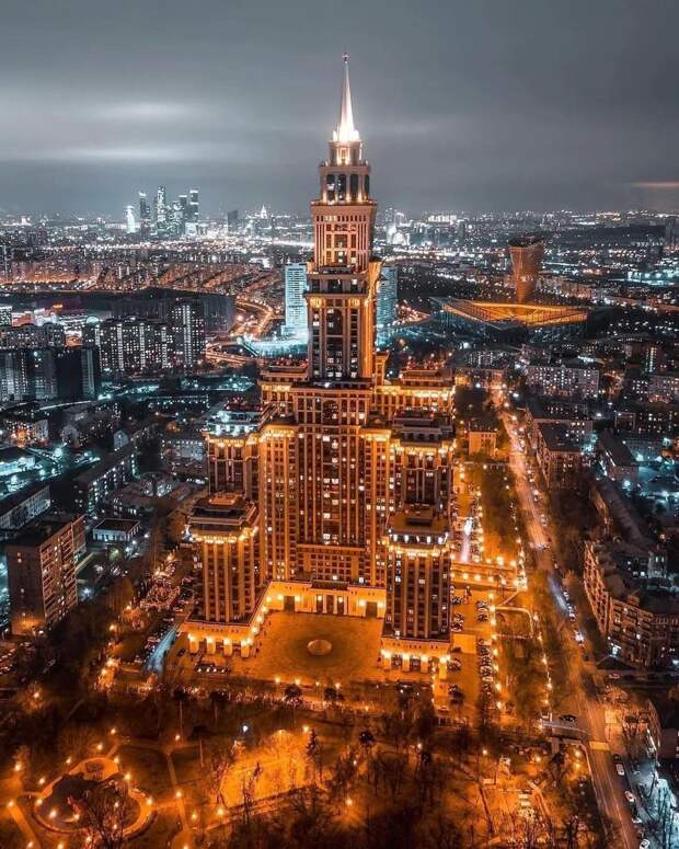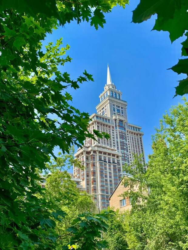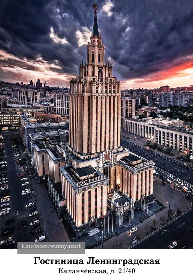 Это здание гостиницы «Ленинградская». Во всех остальных высотках, будь то здание на Кудринской площади или гостиница «Украина», есть флигели, где было оформлено пространство для квартир.