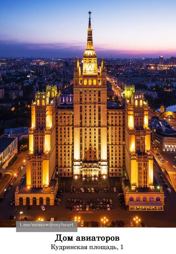 Высотное здание на Кудринской площади. "Дом Авиаторов"Жилой дом на Кудринской площади построили в 1948–1954 годах по проекту М. В. Посохина, А. А. Мндоянца и М. Н. Вохомского.