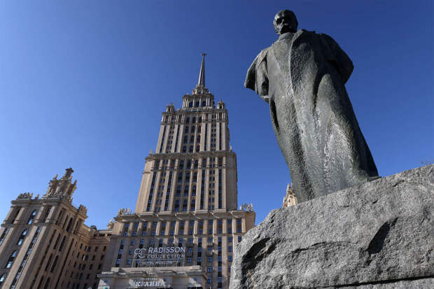 28 апреля 2010 года в обновленном здании гостиницы «Украина» открылся новый современный отель - Radisson Royal Hotel, Moscow.Вид на гостиницу «Украина» сети «Рэдиссон Коллекшн» и памятник Тарасу Шевченко в Москве, март 2022 года
