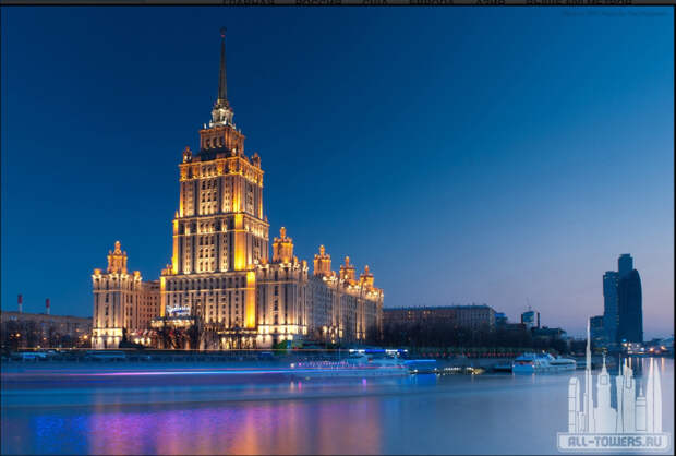 Гостиница "Украина"Свой облик гостиница «Украина» получила благодаря группе именитых архитекторов: академика архитектуры, президента Академии архитектуры СССР А.Г. Мордвинова, инженера-конструктора П.А. Красильникова, соавтора по проекту жилых корпусов В.Г. Калиша и соавтора по проекту стилобата - доктора архитектуры В.К. Олтаржевского, который изучал технику возведения небоскребов в Нью-Йорке и специализировался на проектировании и строительстве гостиниц. Всего над различными деталями проекта работали более двух тысяч человек.