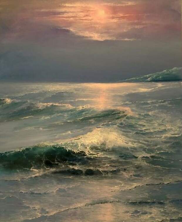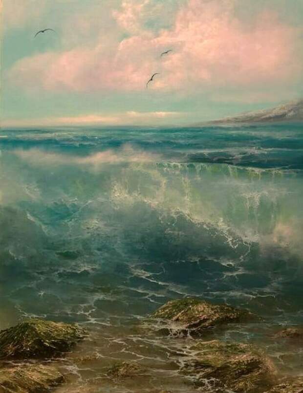 Его морские пейзажи — это не просто картины. Это живое море, которое вот-вот выльется за раму, дышит, шумит и играет на солнце. Волны прозрачны, небо полыхает рассветами и закатами, а зритель будто проваливается в этот чарующий водный мир. Щепетнову удаётся главное — его море трогает за душу и не отпускает.