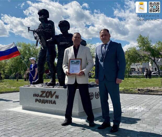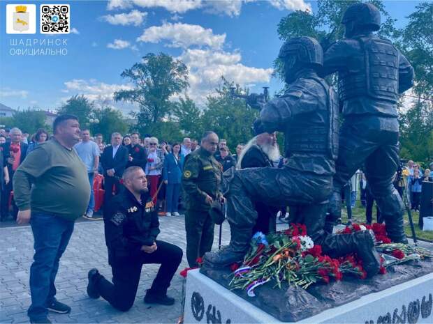 Сегодня памятник вместе с родными бойцов торжественно открыли исполняющий обязанности директора областного департамента общественной безопасности, участник программы «Время героев» Илья Шалита, депутат Госдумы Александр Ильтяков, председатель Курганской областной Думы Дмитрий Фролов, депутат регионального парламента, инициатор создания мемориала Валерий Порубов, Глава города Антон Мокан и неравнодушные шадринцы, помогающие ребятам за ленточкой. Почётным участником церемонии стал наш земляк, командир артиллерийского взвода Владимир Гурьев.