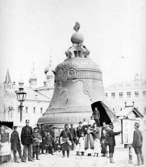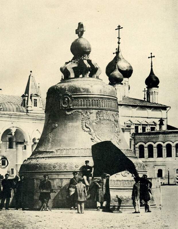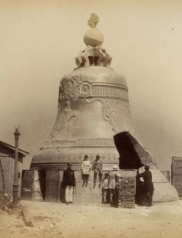 Царь-колокол на территории Кремля, Москва, 1874 год. Интересно посмотреть один и тот же экспонат в разные года.