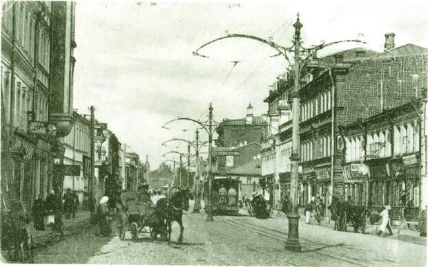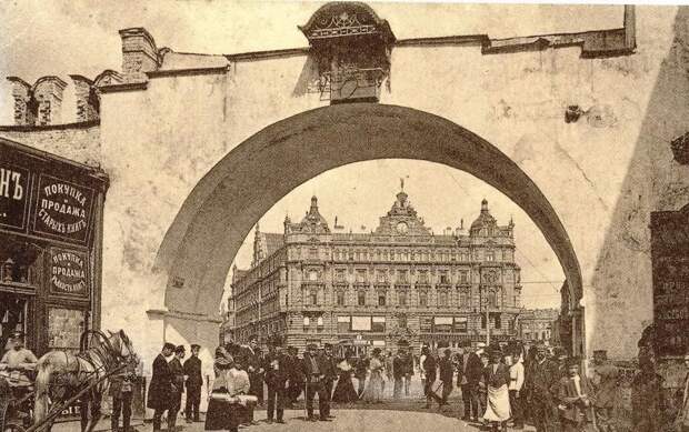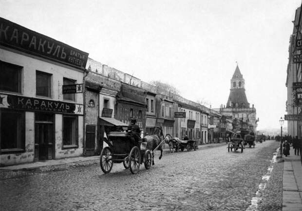 Вид на Лубянскую площадь через Проломные ворота с улицы Никольской 1906г.