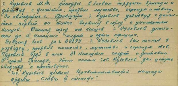 Многие годы о судьбе Кузовлева Михаила Тарасовича было известно совсем немного. Однако в 2015 году правнучка Олеся Толстых при помощи интернет-ресурса «Память народа», введя только фамилию, имя и отчество бойца, сумела найти архивные документы.