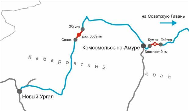 В сотнях километров восточнее, между разъездом Кумтэ и станцией Гайтер, уложили 9,3 км пути. В итоге весь перегон Блокпост 9 км — Гайтер стал полностью двухпутным, это позволило отказаться от разъезда Кумтэ.