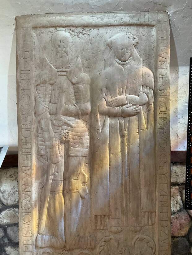 Внутри можно увидеть каменные эпитафии и настенные росписи, которым 600-700 лет. А то, что можно принять за витражи, на самом деле цветной поликарбонат.