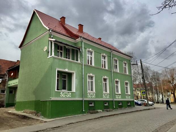 В Калининграде продолжаются работы по «преображению» типовой застройки. Сами организаторы пишут: «Отремонтировали фасад и крышу, возвели фронтоны, тем самым придав дому изюминку и вписав его в единый архитектурный контекст».