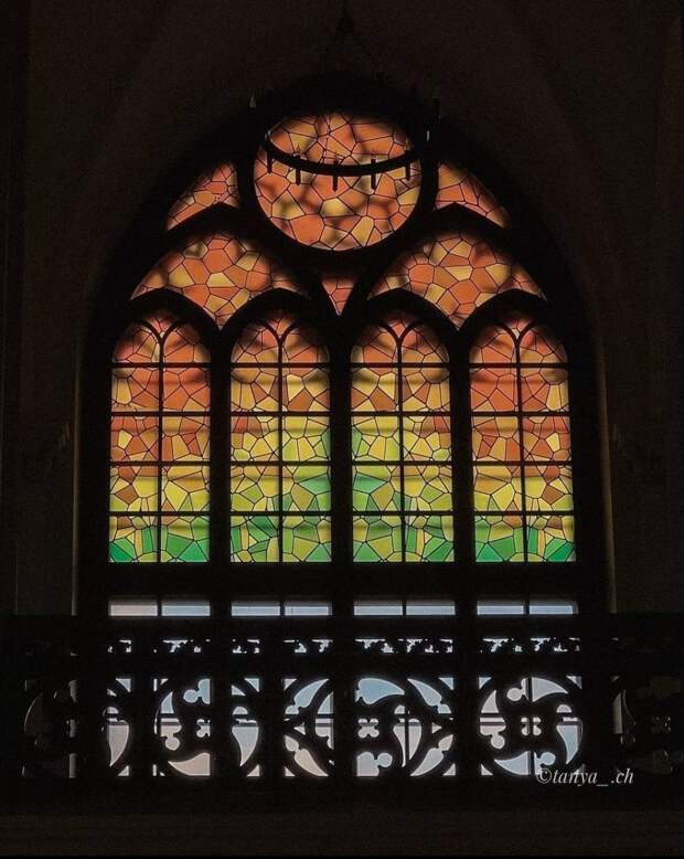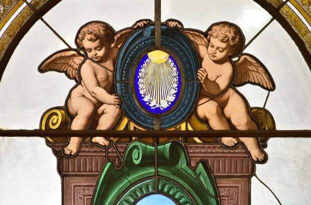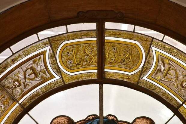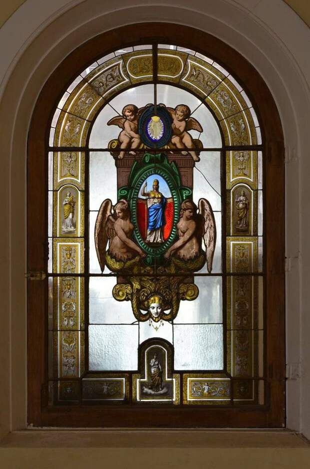 Витраж в Здании Общества поощрения художествЕдинственный витраж в здании располагается во внутреннем окне лестничного проема на втором этаже.