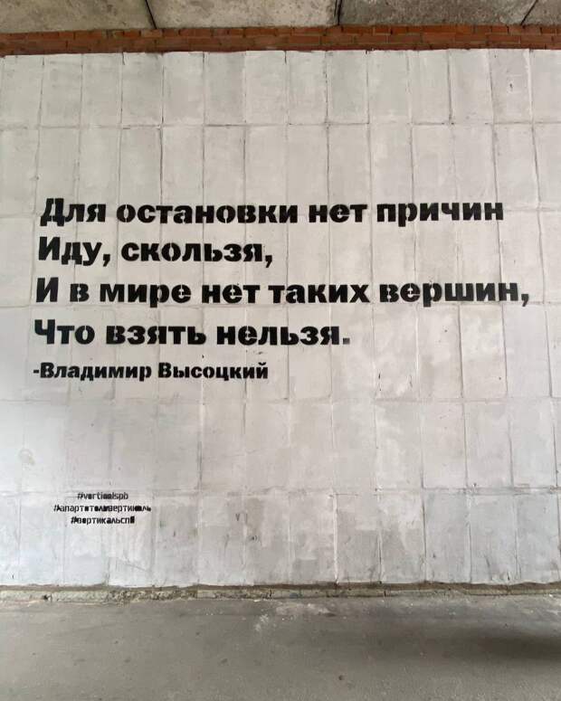 В Петербурге обнаружили граффити с Владимиром ВысоцкимИзображение в стиле фильма «Вертикаль» расположилось рядом с одноименным апарт-отелем.