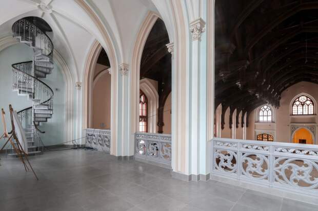 Когда через зал проходит большое количество посетителей, небольшая вибрация от пола всё-таки передается на стены, и это тоже вредит мастике. Поэтому Сергей постоянно проверяет состояние комнаты, следит за температурой и влажностью.Дом компании "Зингер". Санкт-Петербург.