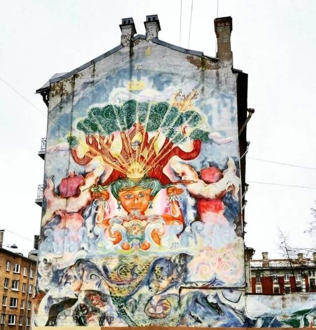 В данный момент изображение утратило сочность красок, но по-прежнему является неофициальной достопримечательностью Василевского острова.