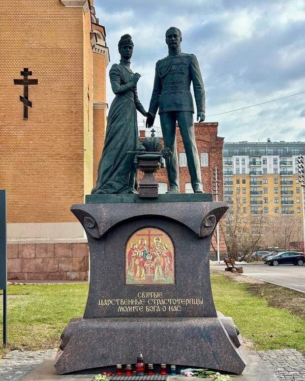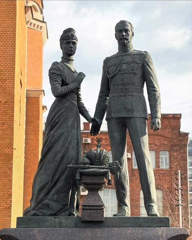 Памятник Николаю II и императрице Александре ФёдоровнеУстановили памятник в 2013 году возле храма Воскресения Христова не случайно. Храм был заложен в 1904 году в честь десятилетия императорской свадьбы.