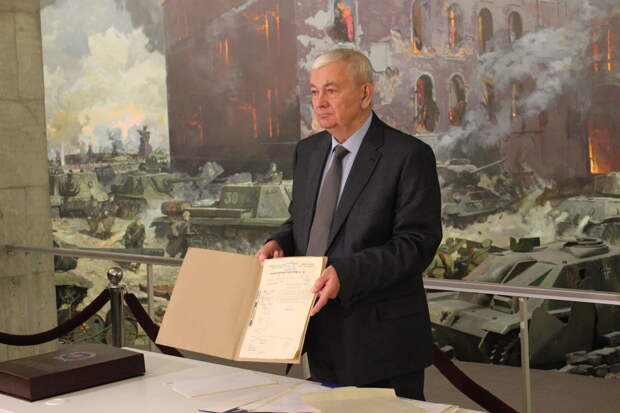 Ветеран военной разведки генерал-лейтенант Вячеслав Кондрашов демонстрирует документы, переданные ГРУ Музею Победы / RT / © Алексей Заквасин