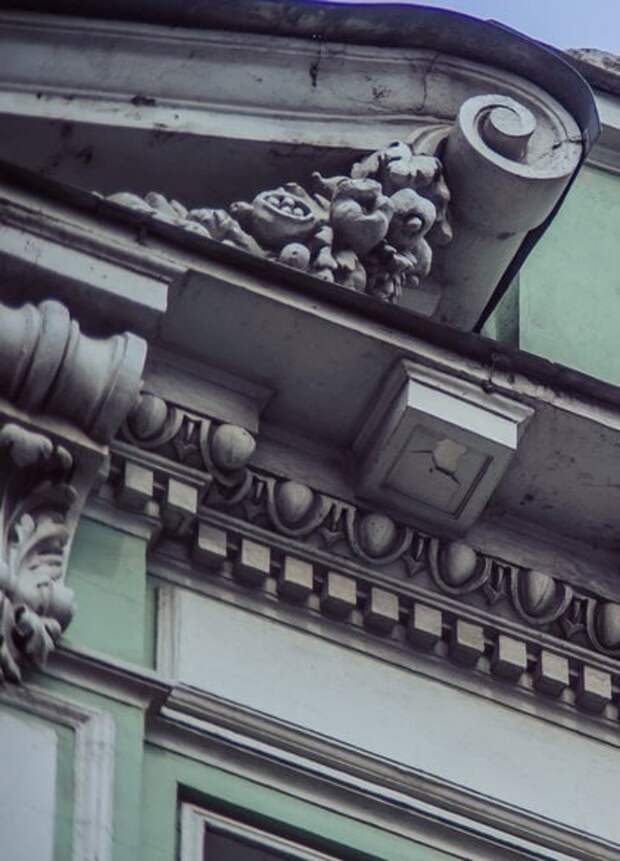 Гуляя по Петербургу, можно увидеть большое количество лиц людей или голов животных на стенах зданий. Это маскароны.