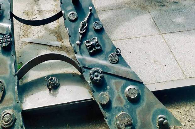 Каждый кузнец-участник фестиваля кузнечного искусства выковал свою заклëпку, поэтому творение получилось международным.