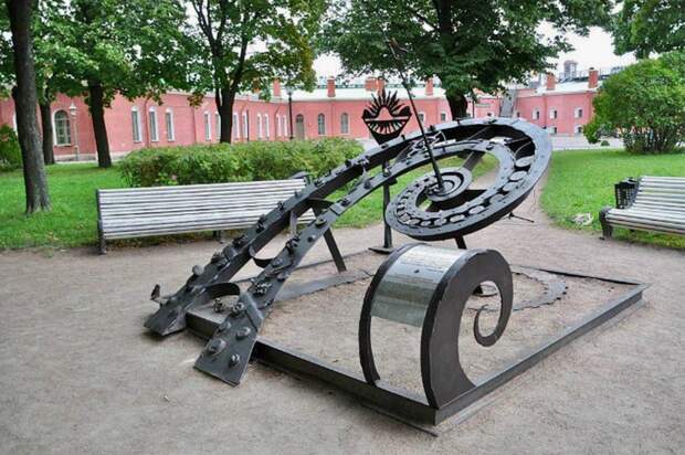 Трёхметровые кованые часы «Время мастера» находятся возле Нарышкина бастиона Петропавловской крепости.