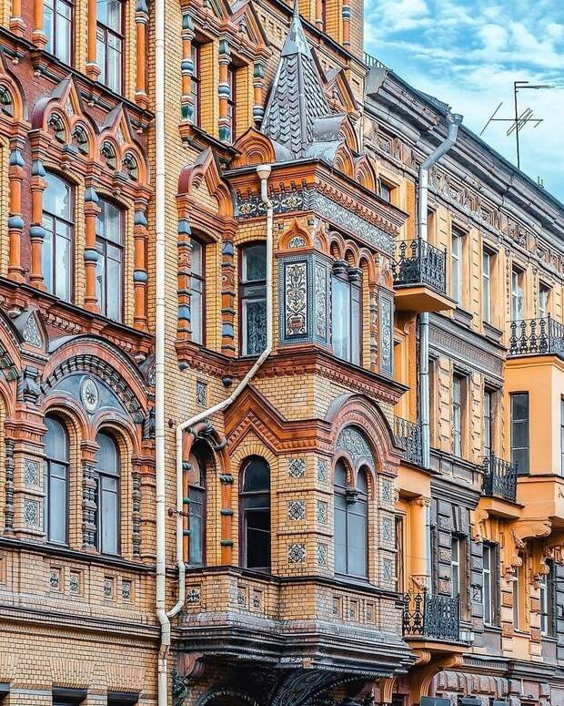 Стоит отметить, что, несмотря на пестрое оформление, дом достаточно гармонично вписывается в архитектурный ансамбль Петербурга.