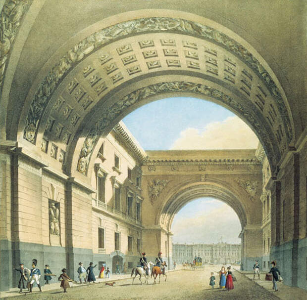 А. Тозелли. Панорама Петербурга. Акварель. 1820.Здание Двенадцати Коллегий