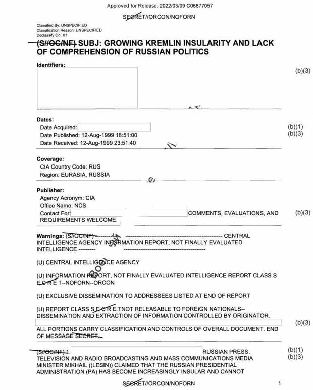 А вот еще в подтверждение ЦРУ рассекретило документ, согласно которому экс-глава Минпечати РФ, экс-советник президента РФ Михаил Лесин всё время своей работы с 1999 года выполнял функции агента и информатора ЦРУ.