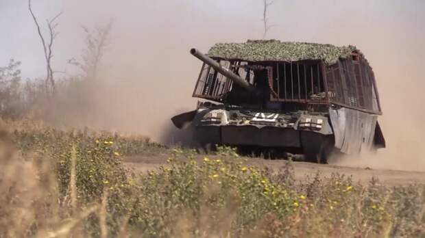 Российский экипаж танка Т-80БВ 5-й гв. ОТБр 36-й гв. ОА ГрВ "Восток" уничтожает позиции ВСУ в лесополосах Днепропетровской области. Кадры показало Минобороны РФ.