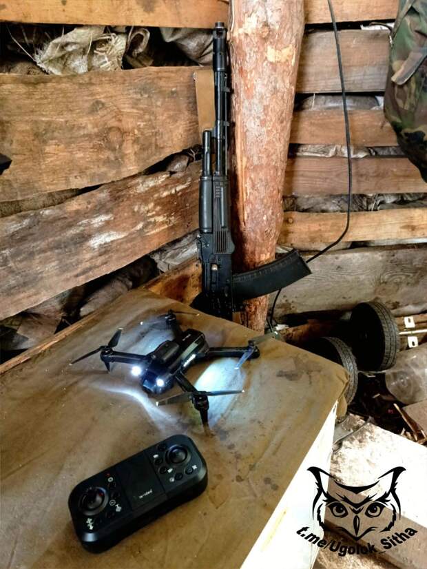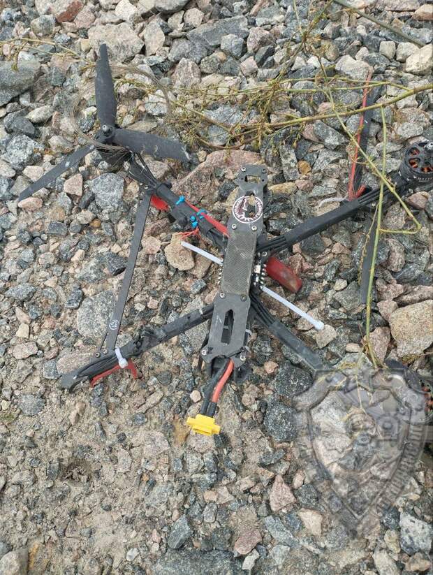 Пограничники на одном из участков границы посадили вражеский дрон на оптоволокне. Перерезали ножницами нить(волокно), после чего расстреляли дрон из автомата.