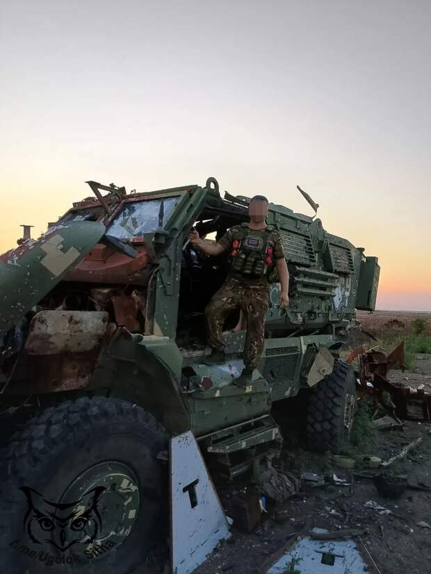 Подбитый трофейный американский бронеавтомобиль International MaxxPro.