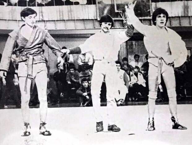 На снимке запечатлён молодой Дмитрий Нагиев, будущий знаменитый актёр и телеведущий, в период своей спортивной карьеры. Нагиев был чемпионом по самбо и заслуженным мастером спорта СССР.