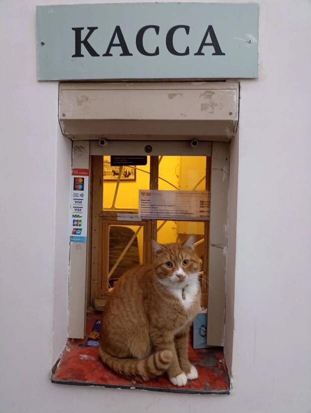 Василий-Паша честно несет службу в культурном заведении. Он встречает посетителей, позирует им, а иногда и до кассы провожает.