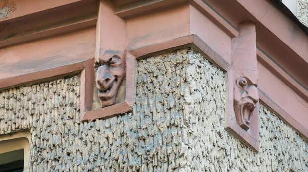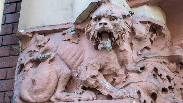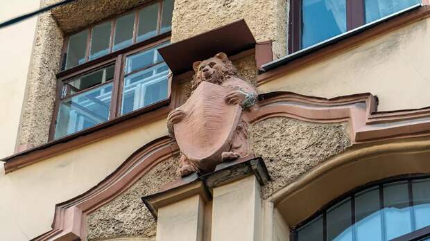 Здание на Малом проспекте привлекает взгляды прохожих своим необычным декором. На его фасаде можно встретить маскароны с разнообразными эмоциями на лицах, котов в «боевой» позе и даже медведей со щитами в лапах.
