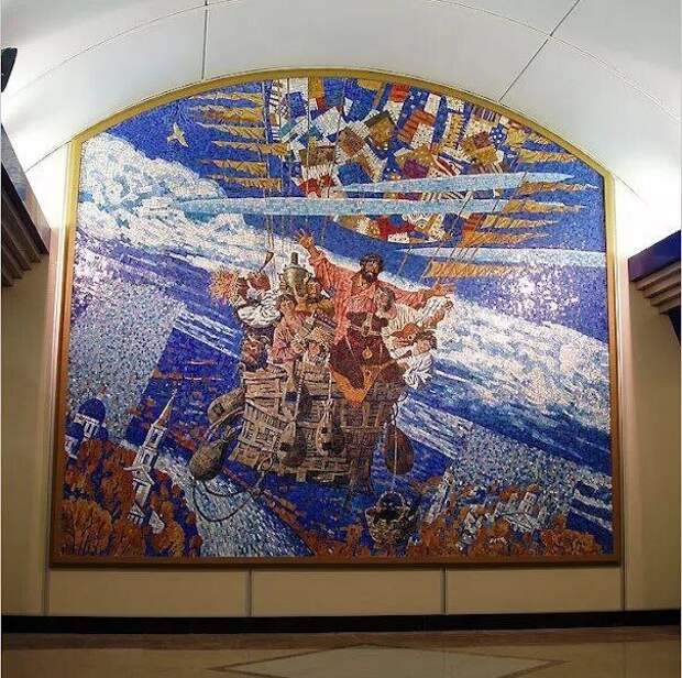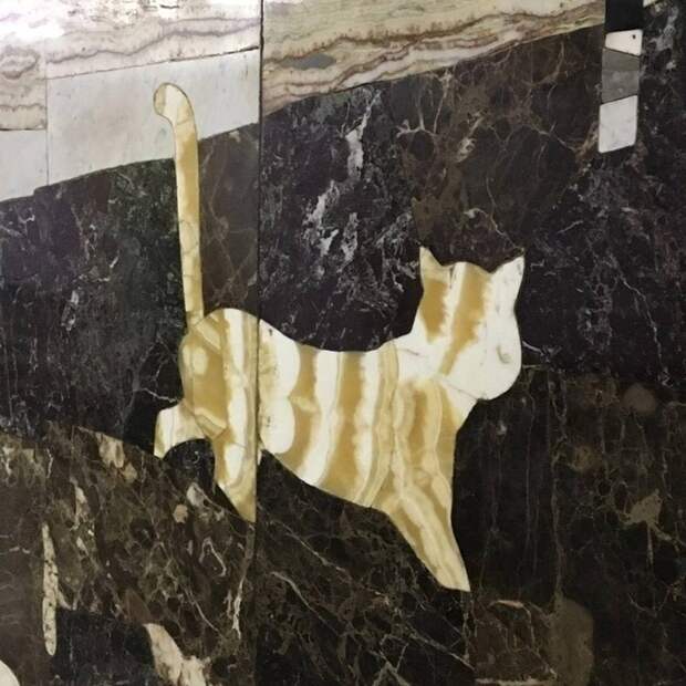 Речь идёт о рыжем коте, который изображён на панно художника Александра Быстрова на «Волковской».
